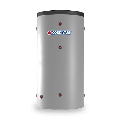 Zalogovnik Cordivari Volano Termico PDC se uporablja v sistemih ogrevanja s toplotnimi črpalkami in sistemih, ki se poleti uporabljajo za hlajenje. Z vgradnjo zalogovnika povečate volumen sistema in zmanjša število vklopov kar pozitivno vpliva na izkoristek in življensko dobo toplotne črpalke.